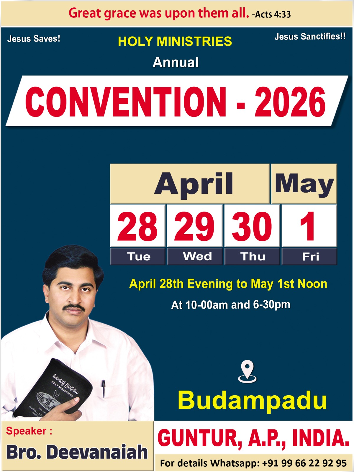 "No weapon that is formed against thee shall prosper" - Isaiah 54:17 is the promise that God has endured in my life since I am in my mother's womb. I am Deevanaiah, born in a Hindu family in Budampadu, a small village near Guntur in Andhra Pradesh, India. Actually my parents did not have children for a long time after their marriage. One day my mother was told by some one that if she prays to Jesus Christ, she will be blessed with children. After hearing that, she sought the mercy of the Lord. God heard her prayers and blessed with children. From then with her little faith in Jesus, though uneducated, she began to pray to Him. But my father did not like it and used to scold her. He never cared for the family. By then they had seven children and it is hard to feed them. As we were not rich, my mother found it difficult to feed the children and decided not to give birth any more. So she took the medicine to abort the babies. Before to me, two babies died in that way. But while I was in her womb, though she took double portion of the medicine, Lord helped me to come into this world. Due to the effect of trials of abortion, I am so unhealthy at most of the times since from my birth. As I was growing in age, I was growing in sin too. At a very young age I started to smoke, flirt and my soul could not find any peace due to these sins in my heart. Also as I saw myself as a failure in my life and studies, I decided to commit suicide at an age of 16. But God with His grace, abstained me from committing suicide. At the age of 19, a friend of mine invited me for prayer. As I did not want to disappoint him, I accepted to go along with him. For three days I went to spend with him in prayer. He used to close his eyes and pray. But I could not close my eyes and pray for so long.
